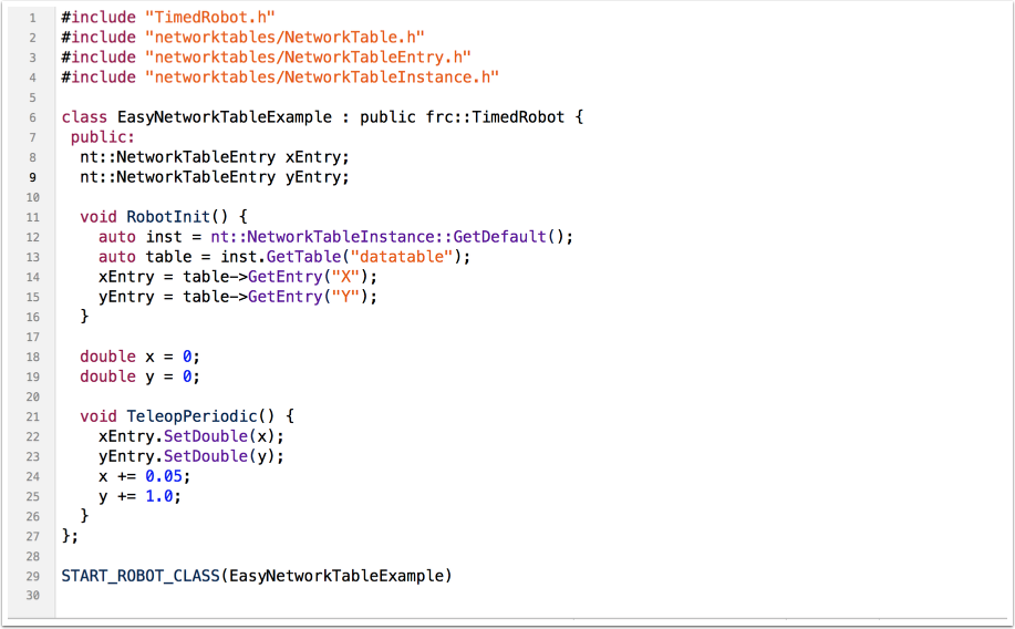 Writing a simple NetworkTable program